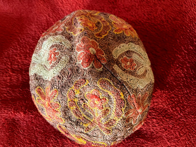2) "Kalapush" (skullcap) - Material: silk emboidery and cotton - Origin: Bukhara - Year: 19th century.